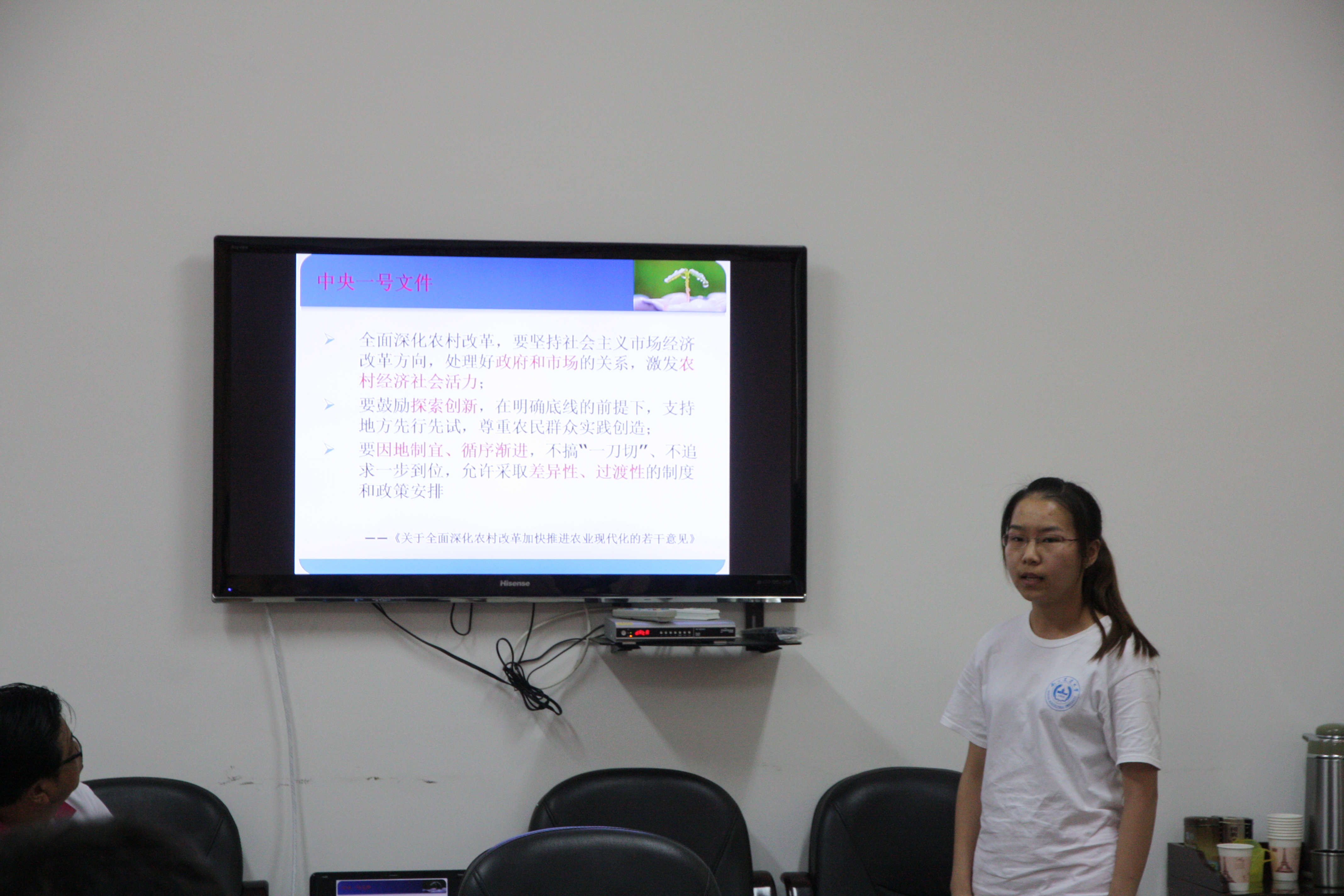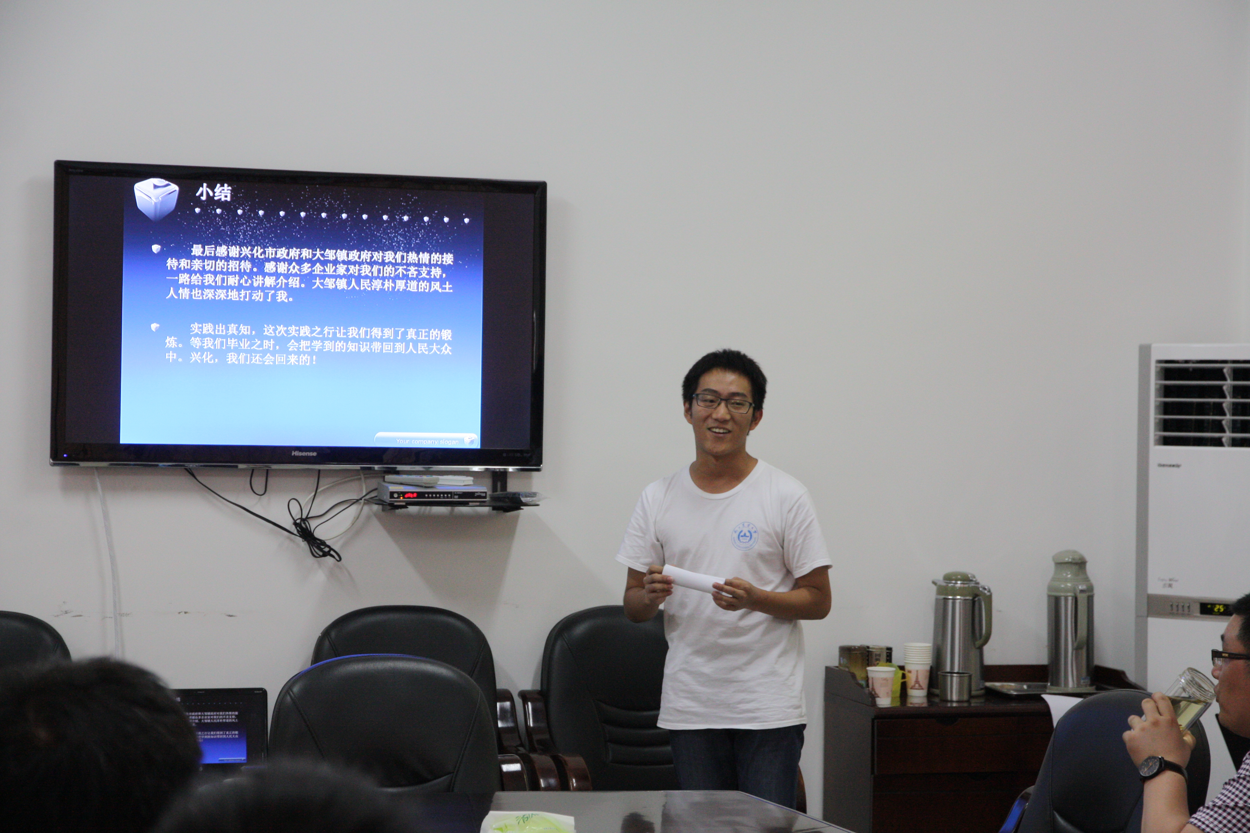 “共筑草绿新农村”社会实践团队分三个小组,分别从政府宏观政策、养殖企业情况和传统种植型农户的角度对兴化畜牧业发展及秸秆回收利用情况进行了专题汇报。政府宏观政策组重点关注了“推进新型城镇化建设”课题,发现农村传统种植业转型中存在很多问题,政策落实缺乏灵活性,如:农村合作社建设缺乏引导,秸秆回收站收购机制不合理,基础建设(如:桥梁、道路)不到位,大机械无法作业。养殖企业组重点关注了“降低饲料成本、提高产品品质”课题,发现大邹镇的养殖企业产业存在规模化发展的瓶颈,无法形成稳定的产业链,比如:养羊场无法从当地获得新鲜的草料,饲料成本居高不下;繁种养殖缺乏科学指导,没有人工育种和饲料青贮的技术,企业效益无法进一步提高。传统种植型农户组重点关注了“农村养老及农业生产劳动力匮乏”课题,发现农村留守老人多,主要务农人员绝大多数年龄在60岁以上,当地户籍的青壮年人群均在外地工作,且基本不会再回农村从事农业生产,未来五到十年内将会出现地无人耕的困局。