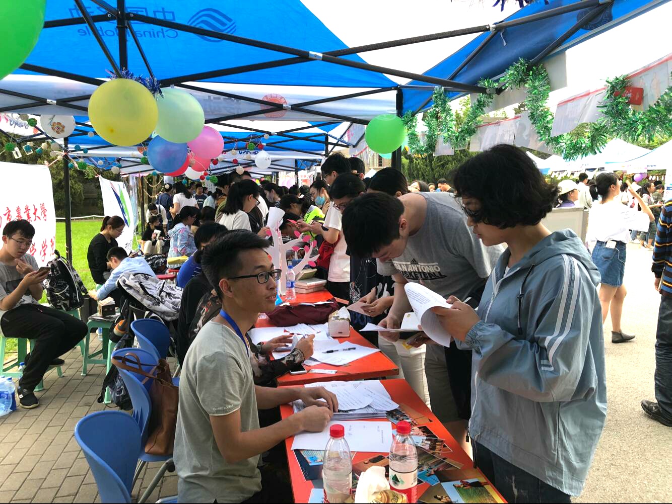 三点活动正式开始。校团委领导们在主楼前发表的一番讲话激起了同学们对本次活动的兴趣与期待,各个院展台前的同学络绎不绝。