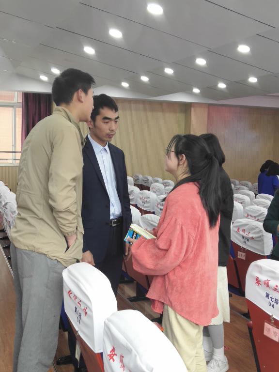 3月28日,两位老师又赴安顺三中,与该校校领导进行了深入交流,全面宣传了学校的办学特色、办学历史和学科专业等情况,并向高三年级学生发放了宣传材料。当天下午,张敬老师为全体高二、高三学生作了以“现代生物技术和基因编辑”为主要内容的讲座,并向学生展示了动漫屋