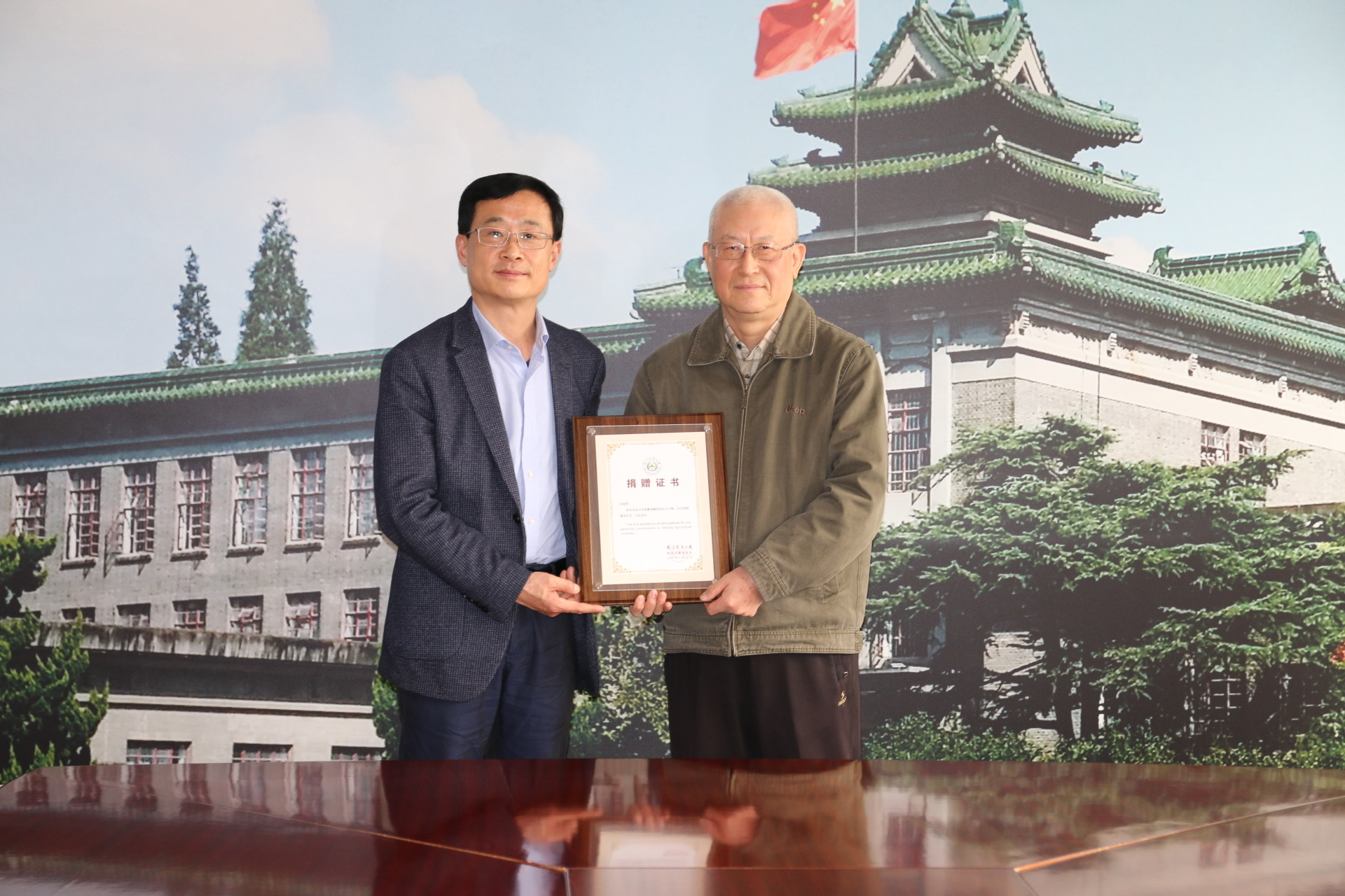 捐赠仪式上,胡锋为任海颁发了捐赠证书,狄传华代表学校基金会与任海签署了捐赠协议。