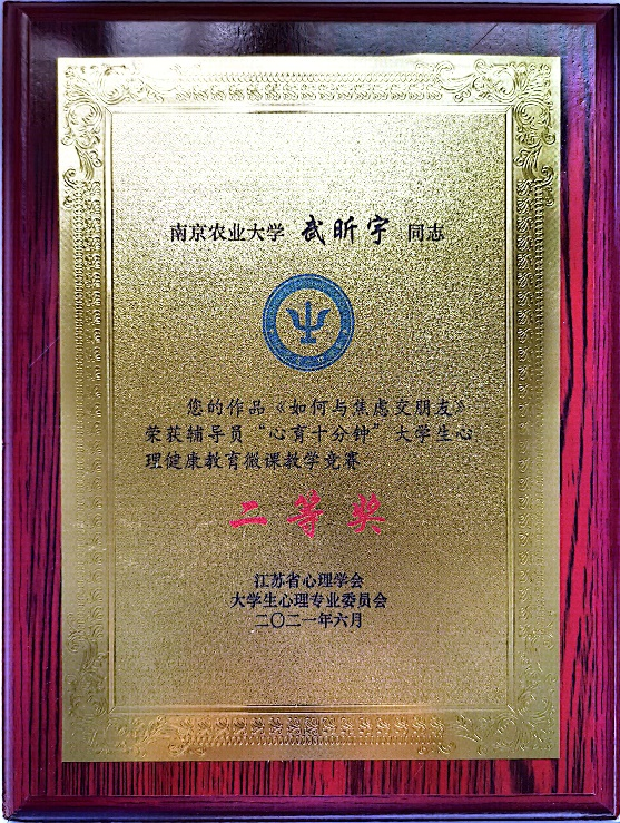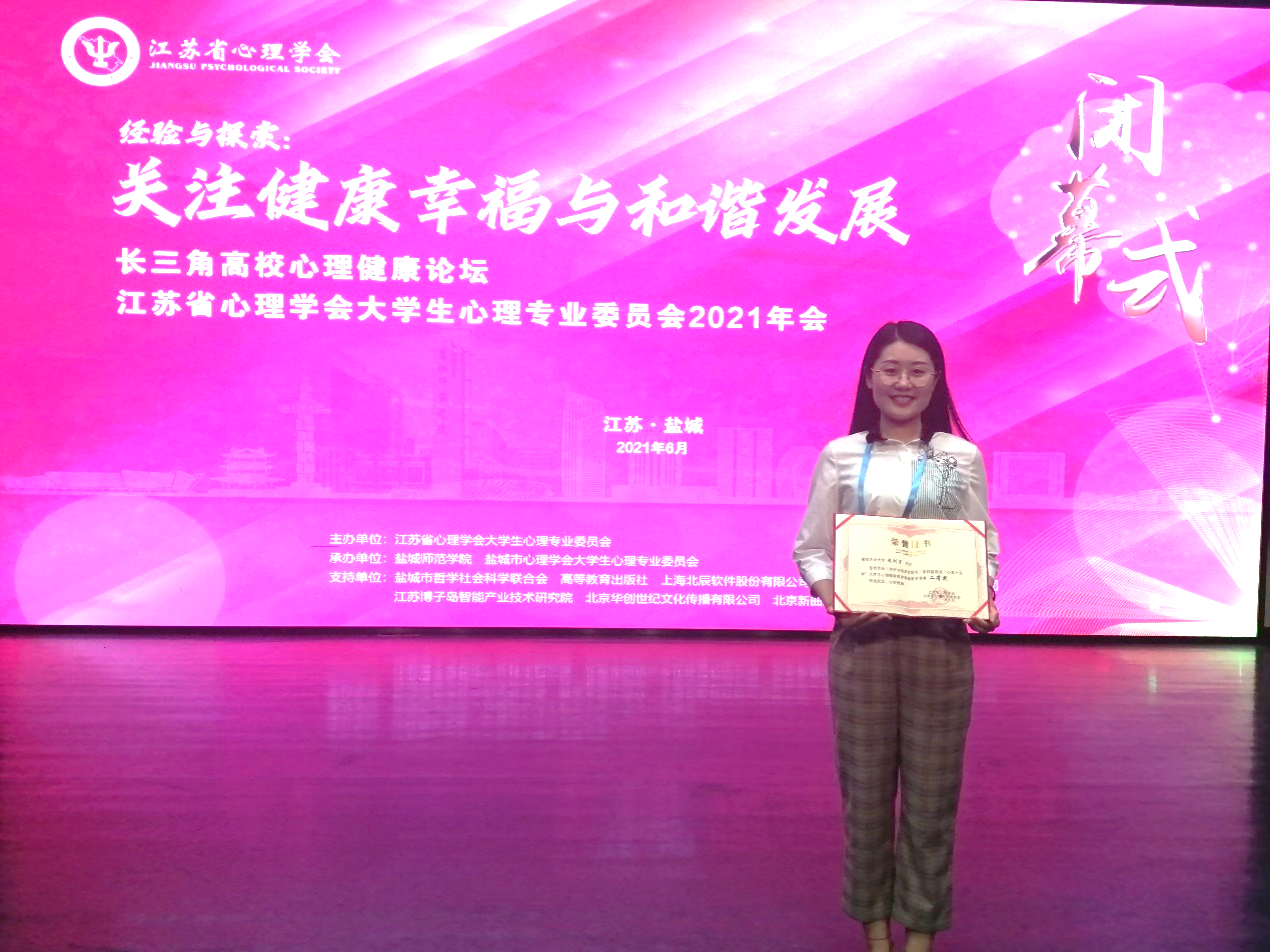 6月9日至11日,长三角高校心理健康论坛暨江苏省心理学会大学生心理专业委员会2021年会在盐城师范学院顺利举行。动漫屋 辅导员武昕宇代表动漫屋 ,参加了江苏省辅导员“心育十分钟”大学生心理健康教育微课教学竞赛,荣获二等奖。
