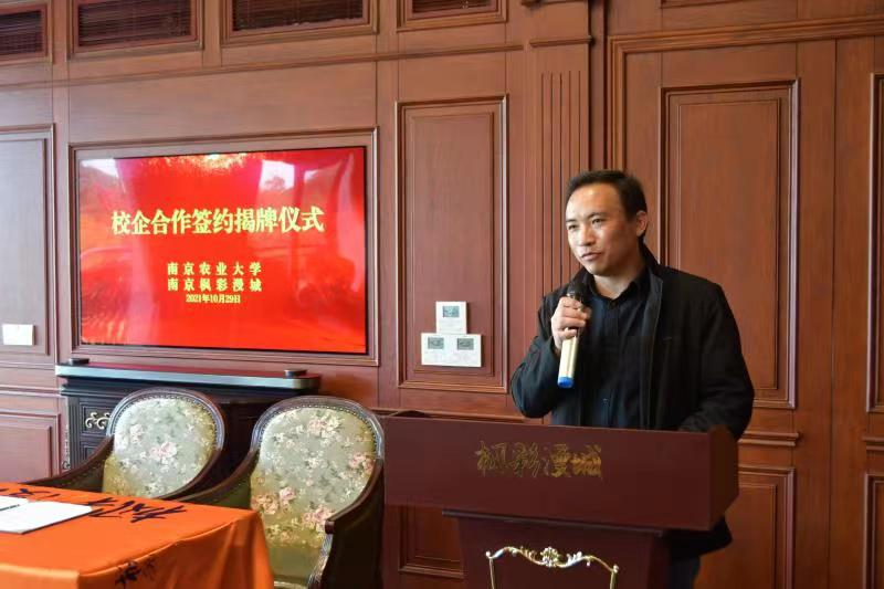 据悉,南京大泉湖枫彩漫城景区由苏州枫彩生态科技集团有限公司投资,南京枫彩漫城休闲旅游管理有限公司建设运营,位于南京市六合区历史悠久、风光旖旎的竹镇,景区占地2100亩,以生态观光为主题,景区有精心选育的红枫、北美海棠等数十种景观植物,面向社会提供综合性生态旅游休闲服务。双方在2021年初即开始相互沟通,四个学院的负责人共同考察了景区,对景区的建设管理水平、独特优势与发展愿景给予高度评价,就共建实践基地等合作内容达成了意向,本次签约揭牌的实践教学基地是双方合作的第一步,今后还将在科学研究、成果转化、第二课堂活动等各个方面进行广泛合作。