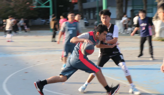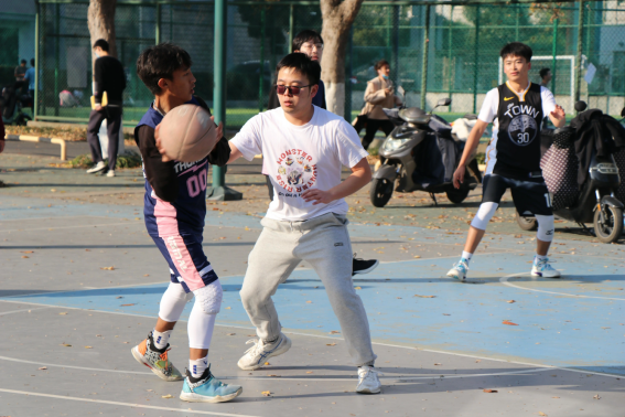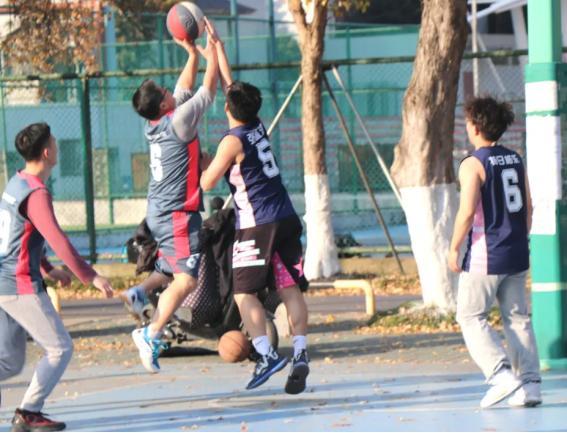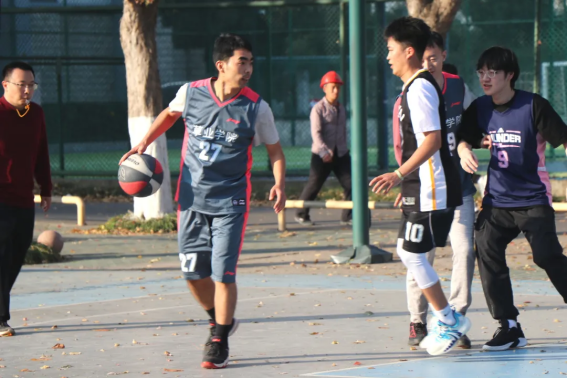 当研究生学长们脱下实验服,换上球服,他们就成了球场上的运动健将。一次次迅速的快攻和精准的上篮让人不禁拍手叫好。而本科生们也不遑多让,很快组织起严密的防守,寻找机会,组织进攻。