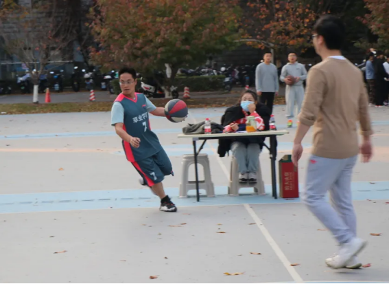 本次比赛里一大亮点的应该就是老师们的比赛了。老师们一改平时严谨的教学科研作风,在球场上跃跃欲试。比赛一开始,老师们的身手就让人大开眼界,配合严密,长传精准。特别是张敬老师灵巧的带球过人突破内线上篮,为教师组赢得了许多分。
