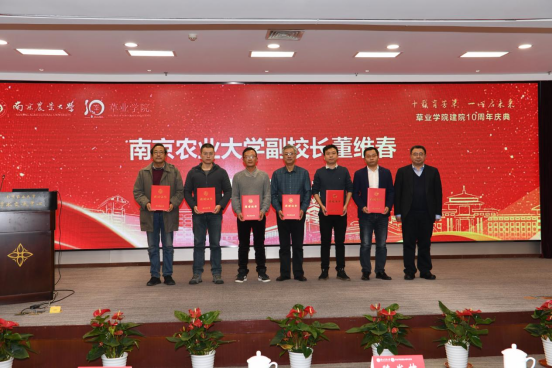 党委常委副校长董维春、江苏省农业农村厅环能处、江苏省农科院、江苏省中科院植物研究所、扬州大学、江苏农林职业技术学院等单位及江苏波杜农牧股份有限公司、江苏草毯绿波生态农业综合开发有限公司等10家企业代表,学校相关职能部门领导、兄弟学院领导、院友代表、院师生代表出席庆祝大会。大会由动漫屋