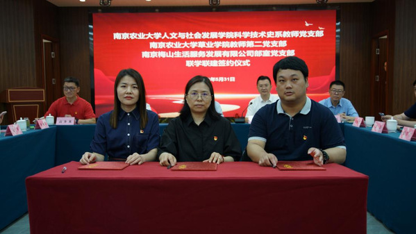 教师第二党支部书记张风革,与南京梅山生活服务发展有限公司综合管理部总经理、部室党支部书记张学芳,共同签署了党支部联学联建协议。会上,吴昊和张风革分别领读习近平总书记2023年5月29日在二十届中央政治局第五次集体学习上的讲话,以及《习近平关于“三农”工作的重要论述学习读本》部分章节的内容,与会者围绕学科特色和研究基础、专业交叉融合发展方向、学科发展方向、人才培养模式、未来工作设想等多个方面发言交流。科学技术史系主任沈志忠带领大家参观南门农艺园博物馆,并讲解中华农业历史。