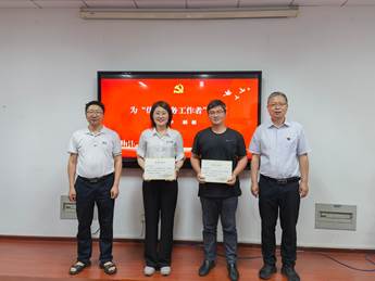 党委关于庆祝建党102周年评优表彰的决定》,熊富强副部长、李俊龙书记为学院先进党支部、优秀共产党员、优秀党务工作者颁奖。
