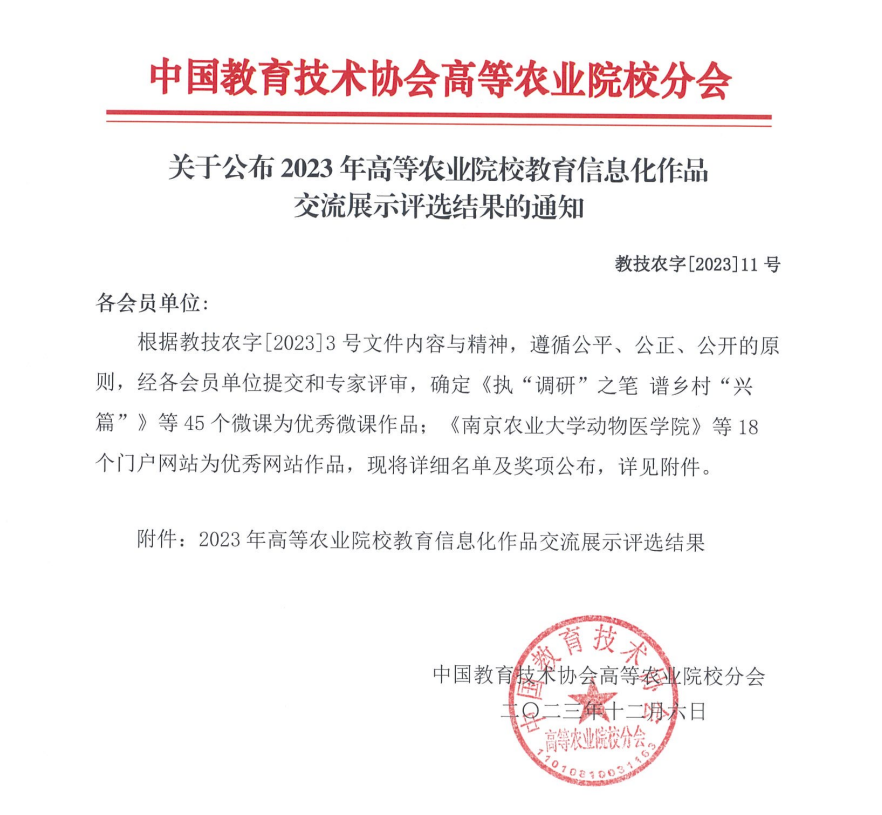 近日,根据校教务处发布的通知,在高等农业院校教育信息化作品交流展示评选中,动漫屋