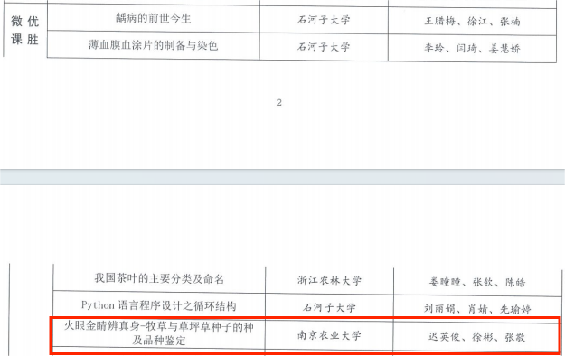 教师庄黎丽的作品《印迹法观测干旱胁迫下植物叶片气孔运动》荣获优秀微课奖,迟英俊、徐彬、张敬的作品《火眼金睛辨真身-牧草与草坪草种子的种及品种鉴定》荣获微课优胜奖。
