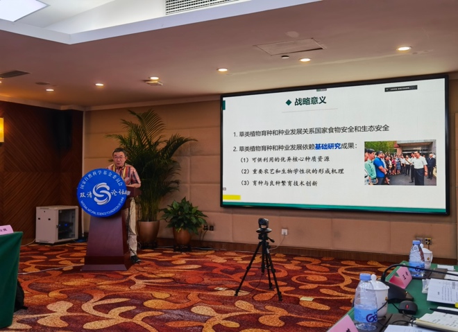 国家自然科学基金委员会第313期双清论坛于2022年8月17-18日在北京召开。会议主题为“新时期草学的重大基础科学问题”,这是国家自然科学基金委召开的首次以草学为主题的论坛,出席论坛的有全国人大常委会副委员长、九三学社中央主席武维华院士,国家自然科学基金委主任李静海院士、副主任高福院士、生命科学部主任李蓬院士,兰州大学南志标院士,云南大学/北京大学方精云院士,中科院植物所种康院士,中科院地理所于贵瑞院士,中科院遗传与发育生物学研究所曹晓风院士等9位院士以及基金委生命科学部、地球科学部、计划与政策局等相关领导。本次会议是草业科学领域出席院士最多、学术规格最高的一次学术盛会。开幕式上,武维华院士表示,将继续努力推进草业科学研究和草业产业的发展,种康院士受武维华院士委托,汇报了九三中央开展草原生态文明建设的研究成果。
