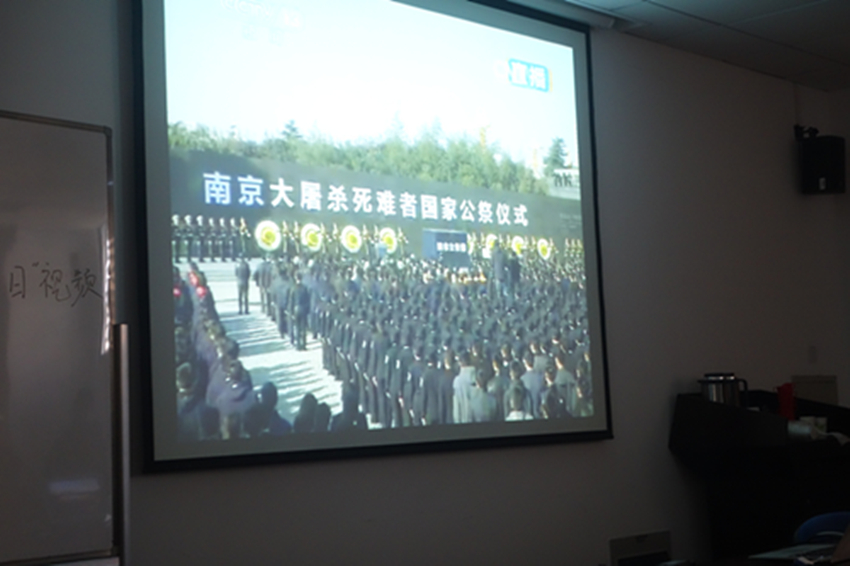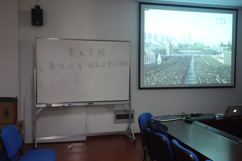 本科二三年级的入党积极分子、预备党员以及班长团支书在学院会议室观看国家公祭日直播。