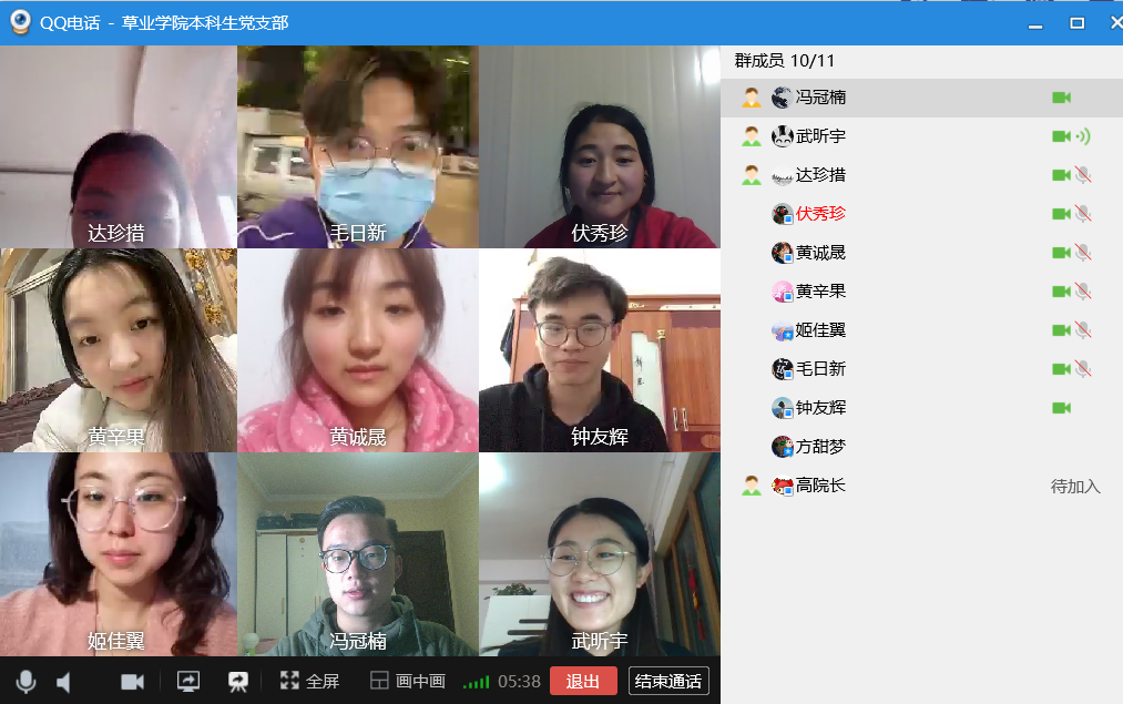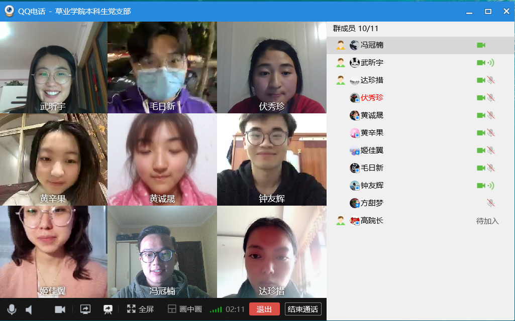 本科生党支部利用QQ视频召开了线上学习会,应到党员10人,实到党员10人,本科生党支部书记武昕宇主持了本次大会。
