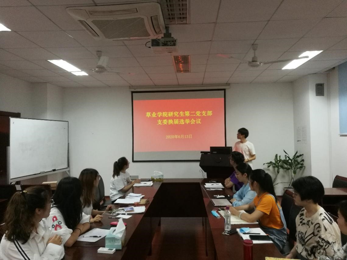 2020年6月13日下午15:00,动漫屋 研究生第二党支部在理科南楼F304开展支委换届选举会议。会议采取线下和腾讯会议视频线上结合的方式进行。会议由党支部副书记季晓敏同志主持。