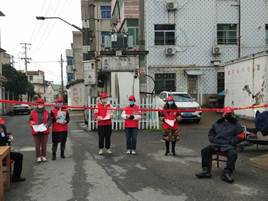我们主要有两大任务,一是协助执勤人员在社区各个出口处设置拦截,非本社区人员一律不准进入,本社区的居民进出必须佩戴口罩,测量体温并登记。社区出入口较多,人流动量大,管控不易,所以我们积极配合执勤人员做好执勤工作,服从居委会的安排,有效提高地社区安全管控力度。第二大任务就是宣传。考虑到社区居民中中老年人口占大多数,可能存在信息滞后现象,所以我们特意印发如何防控新冠肺炎的传单,在菜市场、超市等人流量大的地方宣传正确的防疫知识,让社区的人对新冠肺炎有一个科学的认知以及知道该如何保护自己。宣传初期,常常遇到不戴口罩出门的老年人,我们会耐心地跟他们解说防疫的重要性,告诉他们不能存侥幸心理,要时刻保护好自己,很开心我们的宣传没有白费,渐渐地路上不戴口罩的人不断减少,大家在外都能做好对自己的保护工作。在诸暨市有确诊病例的情况下,我们社区始终保持无感染者的记录。