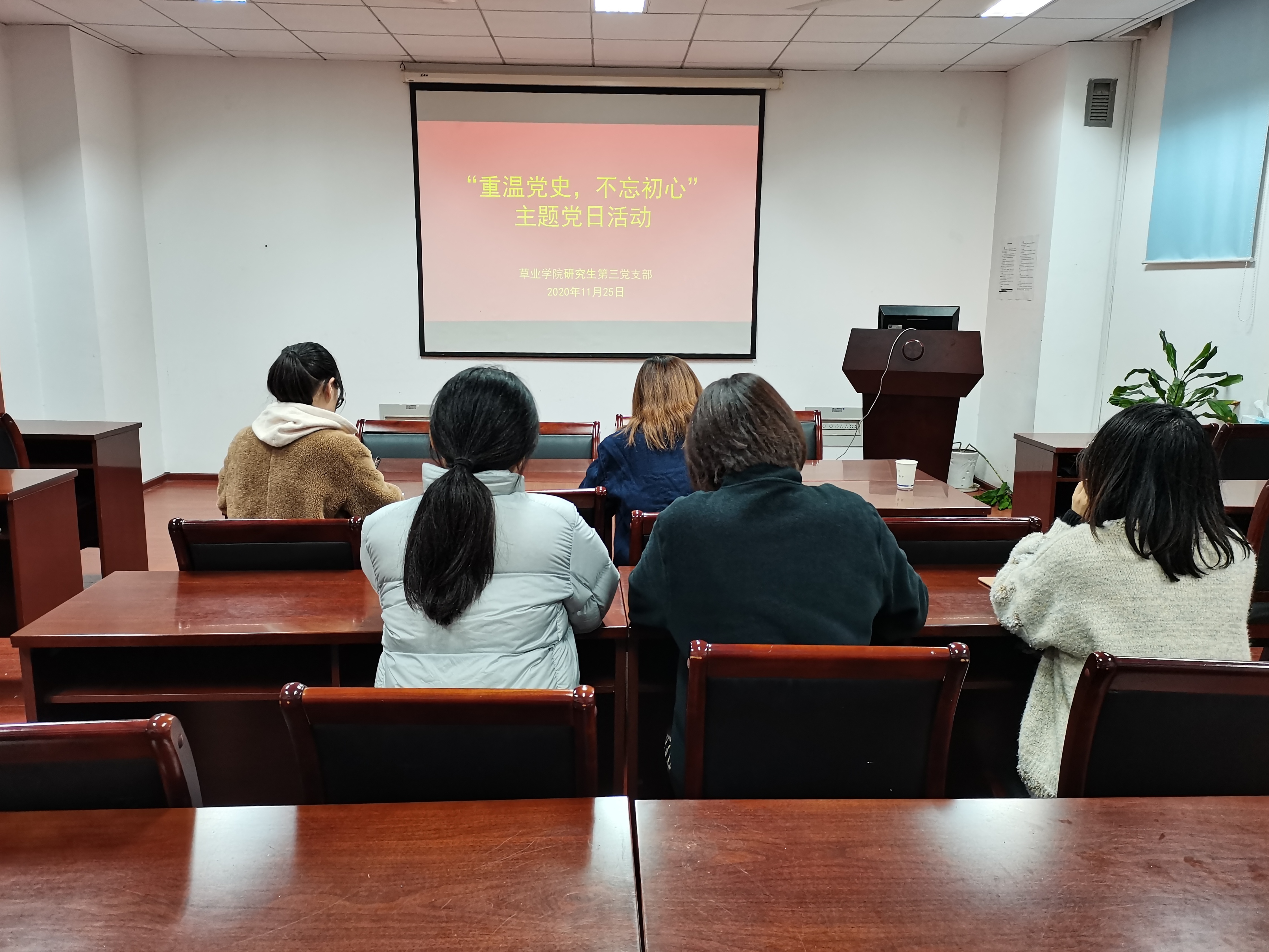 研究生第三党支部在理科南楼F304召开了“不忘初心、牢记使命”主题教育观影会。会议由支部书记赵娜主持,支部全体党员同志参会。