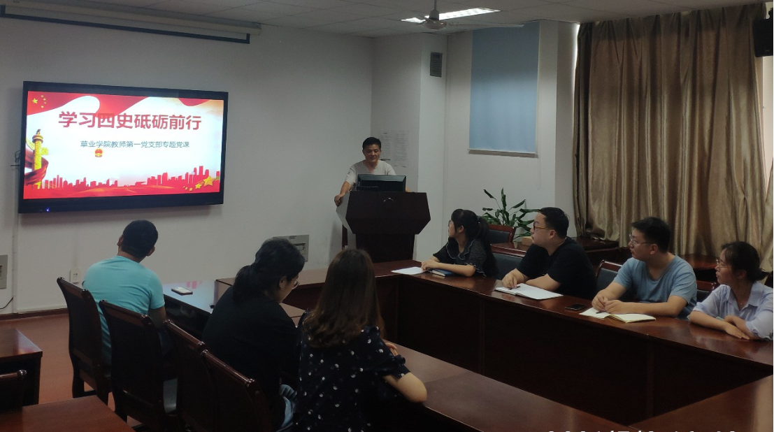 会议第二项,支部书记邵涛教授讲学学习四史砥砺前行的专题党课。强调充分认识党的革命奋斗史。中国共产党一经诞生,就把为中国人民谋幸福、为中华民族谋复兴确立为自己的初心使命。要永远不忘初心,牢记使命,肩负起为祖国、为人民努力奋斗、工作的使命。坚定对马克思主义的信仰、对中国特色社会主义的信念,传承红色基因,增强“四个意识”、坚定“四个自信”、做到“两个维护”,自觉在思想上政治上行动上同党中央保持高度一致,始终忠诚于党、忠诚于人民、忠诚于马克思主义。在新的征程上更加坚定、更加自觉地牢记初心使命、开创美好未来。