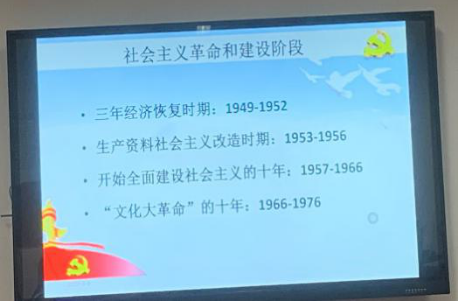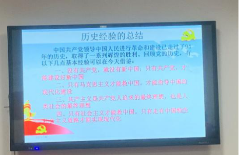 党支部书记原现军同志主持会议,带领大家回顾了1921-2021年百年党史的一些重大转折。