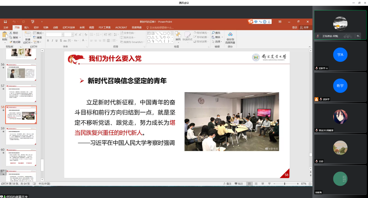 本次党课以“新时代的召唤”为题,何旭老师从新发展阶段、新发展格局、新发展理念和我们为什么要入党这四个方面深入阐述了新时代青年党员的使命担当。
