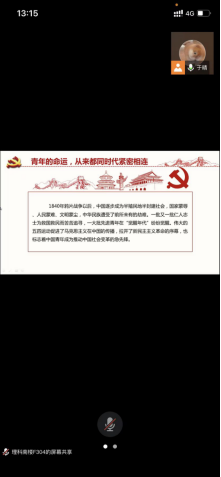 郑钰莹同志带领我们观看了五四运动和党的100周年相关视频,在她们的共同领学下,我们更加深刻的认识到了习近平总书记对我们青年人寄予的厚望,“青春孕育无限希望,青年创造美好明天。一个民族只有寄望青春、永葆青春,才能兴旺发达。”追求进步,是青年最宝贵的特质,也是党和人民最殷切的希望。作为新时代的新青年们,我们更是要做理想远大、信念坚定的模范,带头学习马克思主义理论,树立共产主义远大理想和中国特色社会主义共同理想,自觉践行社会主义核心价值观,大力弘扬爱国主义精神;要做刻苦学习、锐意创新的模范,带头立足岗位、苦练本领、创先争优,努力成为行业骨干、青年先锋;要做敢于斗争、善于斗争的模范,带头迎难而上、攻坚克难,做到不信邪、不怕鬼、骨头硬;要做艰苦奋斗、无私奉献的模范,带头站稳人民立场,脚踏实地、求真务实,吃苦在前、享受在后,甘于做一颗永不生锈的螺丝钉。
