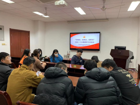 草学专业硕士研究生党支部在理科南楼F304召开了“学报告、谈体会、话担当”党的二十大精神学习交流会,会议由支部书记赵娜主持,本次出席会议的党员共14人。会上全体党员分享了各自深入学习党的二十大精神的内容和感悟。
