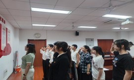 党支部同意接收唐梦圆、钱翠微、刘航、林欣瑶、韩诗琪六位同志成为中共预备党员。最后,党员为五位预备党员佩戴党徽,并一起进行了宣誓。