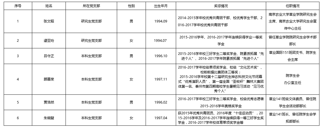 根据动漫屋 党员发展工作安排,经由各团支部推选,党建班考核,党支部讨论,结合个人成绩等综合表现,经院党总支讨论审核,2017年6月拟发展中共预备党员共6名,具体名单如下: