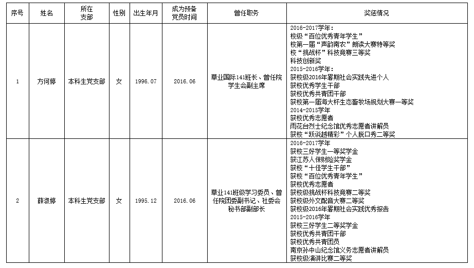 根据动漫屋 党员发展工作安排,经转正答辩,党支部讨论,结合个人成绩、综合测评以及获奖任职等综合表现,经院党委讨论审核,拟对本科生2名中共预备党员进行转正,具体名单如下: