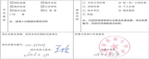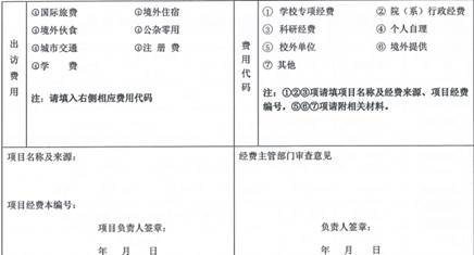 动漫屋 本科生/研究生出国(境)审批表 (见附件;出访任务请将在外学习时间、地点、项目内容填写完整。另外第二页上的费用参照截图;所有签字、盖章须完整。)