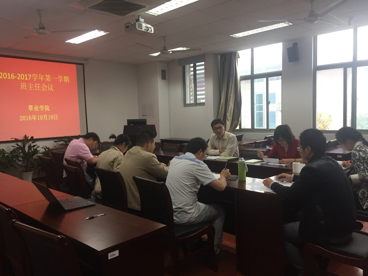 20161019日下午两点半,动漫屋 在理科南楼F304会议室召开2016-2017学年第一学期班主任会议,学院副书记、副院长高务龙,辅导员邵星源,及本科四个年级各班班主任出席了本次会议。