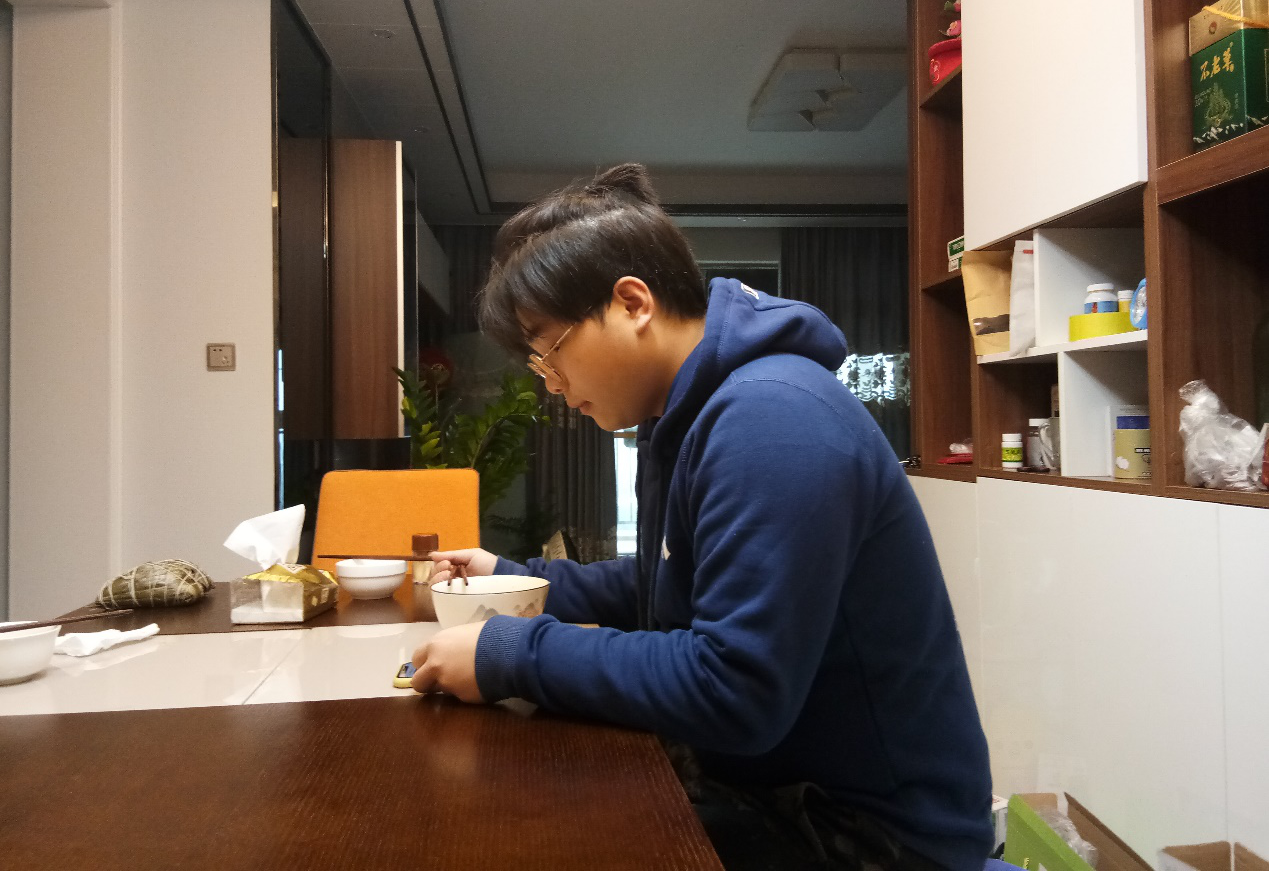 中午十二点党员方甜梦一家吃午饭。她家在浙江宁波市,为响应当地卫生健康委员会的要求,积极配合政府疫情防控,家庭成员主动减少外出,留在家里,不聚集,不串门。此刻,一家四口聚在电视机前,一边关心疫情情况一边吃饭。这个假期也是她大展厨艺的时候,这不,香喷喷的烤鸡翅就得到了家人的夸奖。与此不同的是预备党员姬佳翼,参加了寒假戴维斯训练营的她,搭乘飞机从上海回家,同机乘客有疑似病例,于是她一到家就主动要求进行单独居家隔离,每天由家人送饭到另一栋楼的指定住处。半年未见到家人的她说,如果能用简单的隔离避免邻居的恐慌,她也非常愿意。
