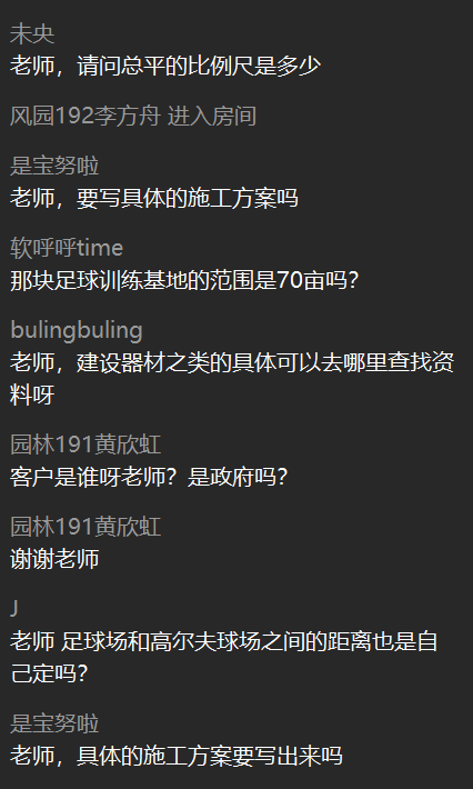 杨老师详细介绍了客户群体、周围设施建设、管道材料等基本问题,对总平面图比例尺、养护管理设备以及参考造价等等与大赛密切相关的问题也做出了解释。同学们收获颇多,也对此次大赛的要求有了更为明确的认识。