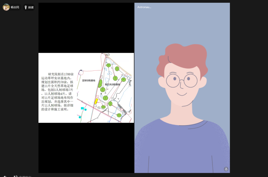 杨老师首先介绍了本次大赛的背景和主题,随后结合地图为我们讲解了比赛设计场地的具体情况。本次大赛要求同学们以在建的句容草坪研究院足球培训基地为应用背景,从“科学创新”出发,以“实用性”为目的,对11片足球场地布局作出规划,并选择其中一片11人制球场用作训练场地做详细的设计和施工说明。
