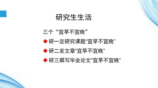 刘芳本次分享主要分为“研究生生活”和“就业准备与建议”两个部分。首先,她以“三个‘宜早不宜晚’”展开第一部分,强调把握时机和规划学习的重要性;接着,她传授了自身求职从思想到技能方面的准备,并安利了武昕宇老师的求职规划课,整个分享干货满满!