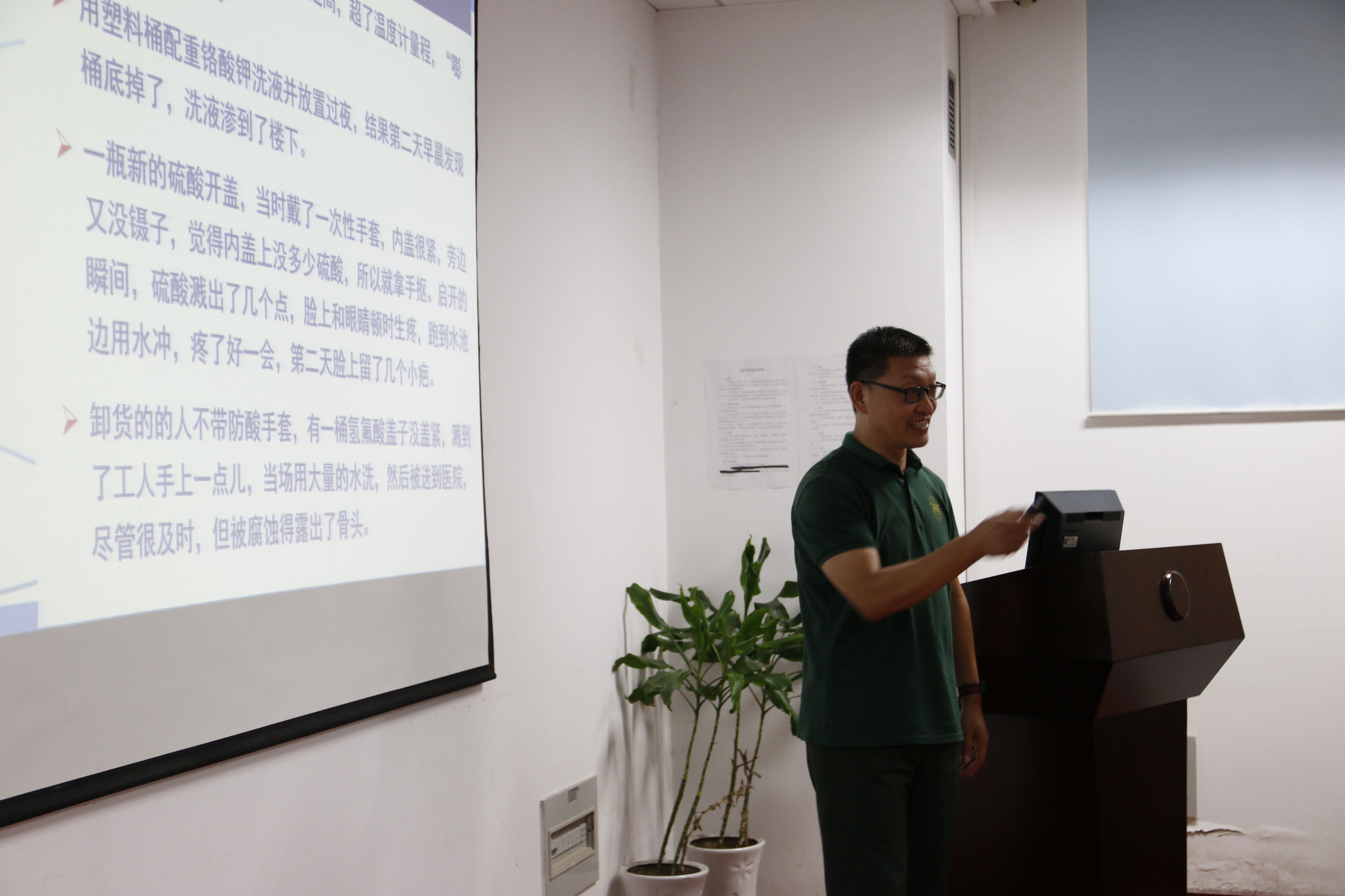 实验室安全管理体系,望同学熟读实验安全手册,正确实验操作,在确保自身安全的情况下进行科学实验。他希望新生能够给自己一个牢筑在安全基础之上的成长成才的研究生生涯!