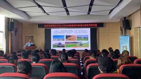 接下来,全体本科新生聆听了杨志民教授的讲座。杨志民老师简要介绍了草坪研究院的基本情况,带领大家认识了各种类型的草坪,指出草坪产业的重要性以及我国草坪产业发展潜力巨大。同时介绍了草坪研究院目前已培育出一批特异抗逆种质资源,团队在草坪科学与技术领域国内领先,一些技术成果已经规模化推广应用。