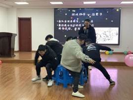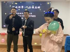 在主持人幽默风趣的开场白和三位分别来自两个学院特邀嘉宾的歌曲串烧表演后,现场的氛围逐渐热络了起来,抢椅子、正话反说的游戏环节令大家捧腹连连,也通过许多小奖品增强了同学们的参与感和积极性。