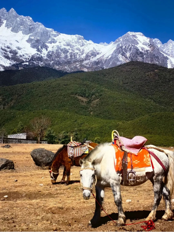 在丽江的茶马古道上,在山脚下晒太阳的马儿边,在抬头便随处可见玉龙雪山的马路边,遇见彩云之南,见过了壮丽河山后,才真正领悟“绿水青山就是金山银山”,祖国的大好河山希望见到日照金山的我们2023好运连连。