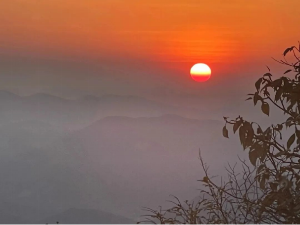 凌晨四点出发,历经两个小时,爬上了我的家乡最高的山。会当凌绝顶,一览众山小,我们等待着日出的到来。朝霞已经染红了半边天,太阳探出了头,与太阳相对的,月亮也挂在半空中,日月同辉的景象可不多见。脚下的云海让我们置身仙境,我们可以看到一座城在沉睡中醒来,从灯火通明到暗无边际,再到云开见光明。这是一种全新的体验,尽管很劳累,但是很值得,我们在山顶尽情享受着自由的风,我们尽情高歌,我们心在远方。