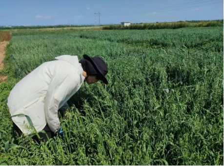 717日上午,呼和浩特一组的成员们在雷瀚老师和田振东老师的带领下,在燕麦地继续开展关于燕麦鲜重的种质资源评测。同学们在燕麦地的每个小区内,随机选取垄长为一米的区域,然后对区域内的燕麦进行收割,并将其区段内的所有燕麦放入大网中进行称重,再随机抽取大网中的10株燕麦放入小袋中称重记录并贴好标签用于后续的数据测量。