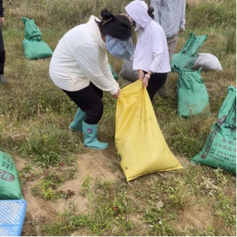 在确定下退化草地的修复样地后,两位同学跟随师兄师姐前去采集土样,之后带回实验室用于布置盆栽实验 ,从样地中挖回的土壤会先后进行过筛、翻混、装盆后,在其基础上设计不同的实验处理,以获得更加完善的结果。