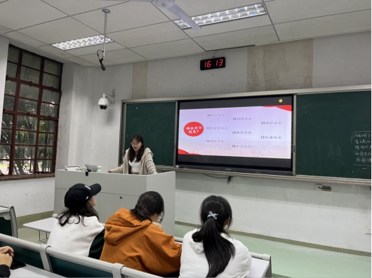 秉承安全第一的理念,孟欣同学讲解了我们身边会遇到的十类安全问题,并展开激烈讨论。最后以国家安全、财产安全、实验室安全、用电安全为重点进行全方位的剖析讲解。希望同学在今后的学习生活中可以消除安全隐患,时刻注重自己及他人的安全。
