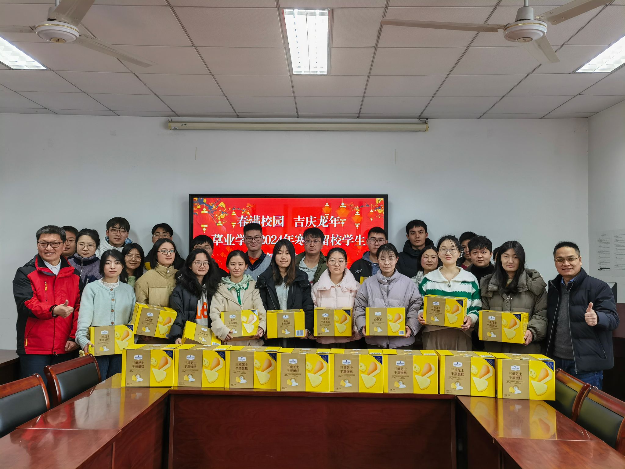 问候暖人心,祝福传真情。最后,学院领导为留校学生赠予新年礼包,座谈会在全体师生欢乐融洽的气氛中圆满结束。