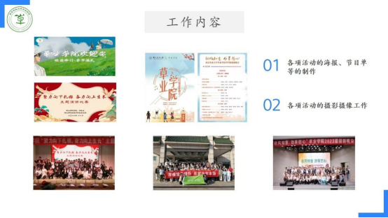 在这个部门,你可以学到很多实用的技能,例如海报制作、视频剪辑、新闻稿撰写、摄影摄像等。我们的每一篇推送都代表着学院的形象,需要有对文字图片精雕细琢的耐心,需要有与各部门沟通的技巧。如果你是一个热爱宣传工作的人,欢迎加入宣传部!