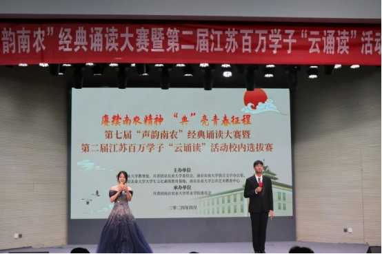 第七届“声韵南农”经典诵读大赛决赛暨第二届江苏百万学子“云诵读”活动校内选拔赛"在大学生活动中心正式拉开帷幕。