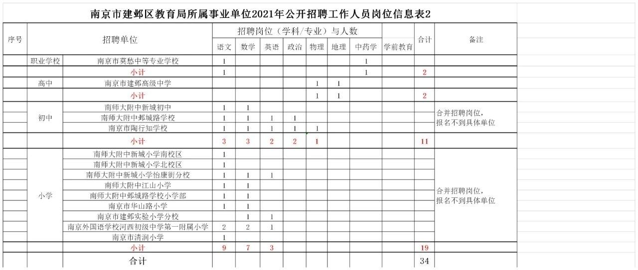 根据招聘岗位需求,此次南京市教育局所属12所学校招聘62名编制内教师;鼓楼区招聘156名编制内新教师;玄武区招聘160名编制内教师;秦淮区招聘130名编制内教师;建邺区招聘266名编制内教师;雨花台区招聘225名编制内教师。招聘范围包括高中、初中、小学、幼儿园以及职业学校。