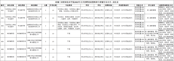 盐城工业职业技术学院2022年公开招聘思政教师和专职辅导员公告