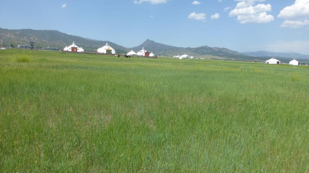 我们按照既定的行程前往了“万亩草原”,这里是蒙草集团进行草地修复的重要成果之一,现在的万亩草原是一望无际的绿野,非常壮观。谁都无法想象,在此之前,恶劣的自然环境与人为干扰使这里沙石遍地寸草不生。这样的成果离不了蒙草集团因地制宜的方针,他们对水质,土质进行细致的划分,用当地的优质草种作为生态修复的原料。这是令人震撼的景象,作为草业人的我们也有这样的责任去保护草原,改善与治理沙地,碱地。