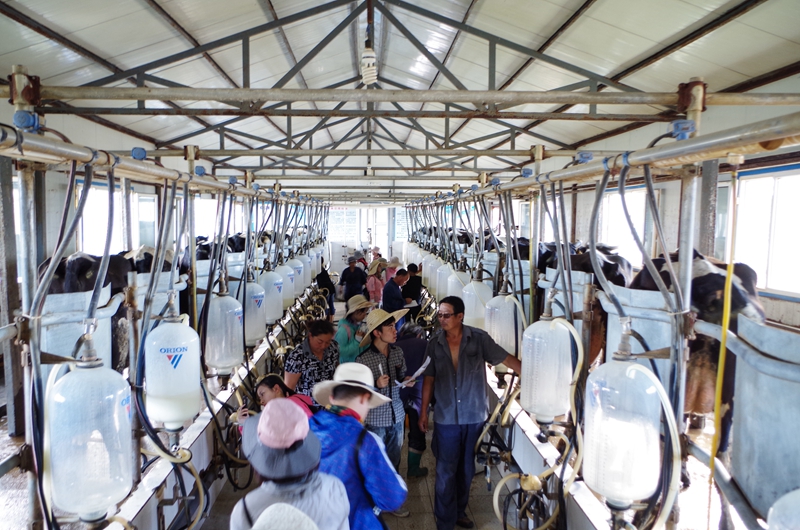 在实际的调查过程中,成员们分赴不同街道进行调研。我们发现不同地区有关放牧方面的政策是不相同的,有的为划区放牧,有的为自然放牧,这些方法既有利于草场的合理使用,也提高了草地利用率。在当地的奶牛养殖小区内,成员们真正见识到了奶牛饲养过程中的一系列现代化机械,奶厅中牧民们有条不紊的进行着牛奶生产的机械操作,在与实践团热烈交流的同时依旧紧张高效的完成工作。