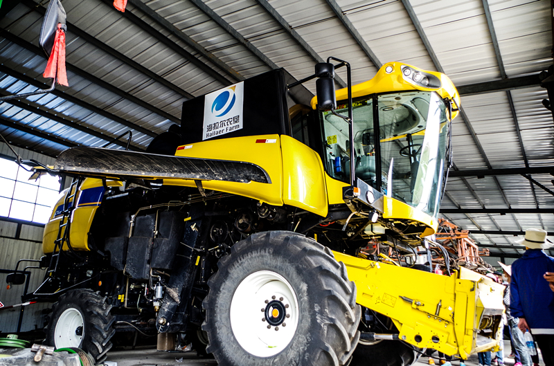 “天卷草色,万里牧歌”社会实践团驱车前往位于海拉尔市郊的农垦集团。首先,在集团负责人和指导老师的带领下,成员们参观了农垦集团基地中的各种大型设备,农垦集团是一家大型的国有企业,主要负责粮食的生产等任务,因此,基地中与生产相关的机械一应俱全,从手动的拖拉机到现代化的机械,如灭草机、捡拾机、撒药机等,既具时代感,又使参观者一目了然。