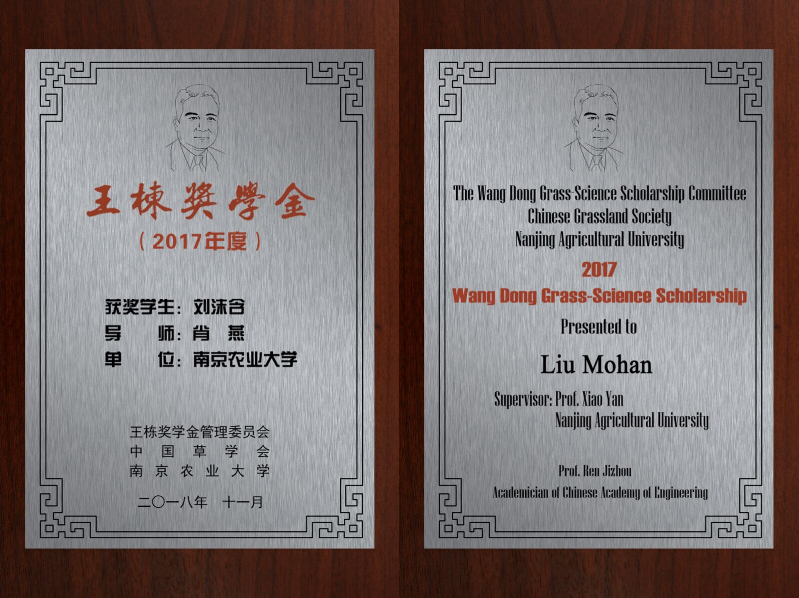 11月8日上午,2017年度王栋奖学金颁奖典礼在中国草学会2018成都年会上举行。我校硕士研究生刘沫含(导师肖燕副教授)获此殊荣。一同获奖的还有兰州大学、宁夏大学、四川农业大学、中科院教育部水土保持与生态环境研究中心、东北师范大学、中国农业大学的6名博士研究生和3名硕士研究生。